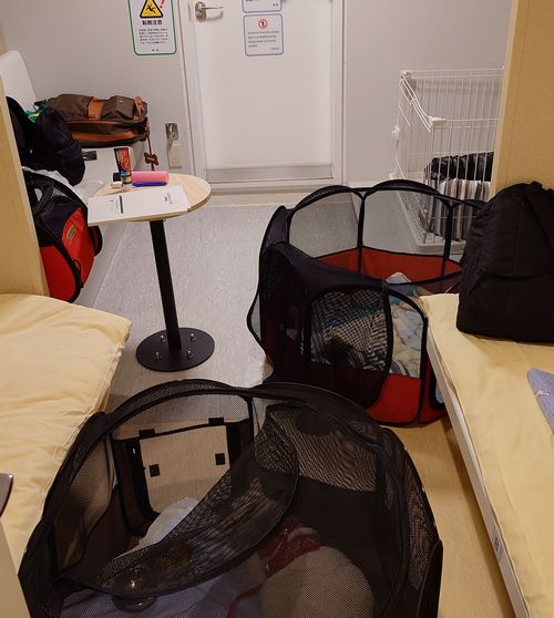ケージは一つのようだったので、六角形の折り畳みを二つ持参しました。