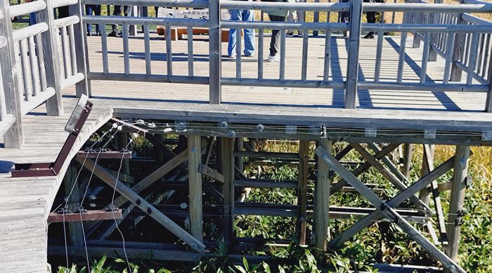 高架木道、周りはヒグマ除けの電気柵があり電気が流れれいるそうです。